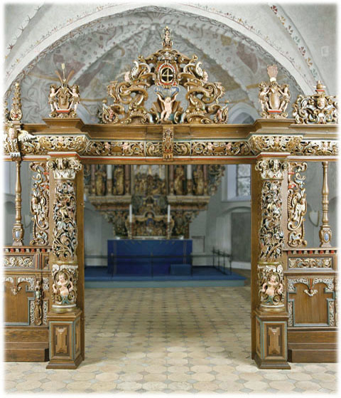 1624-33. De snoede søjler menes at have forbillede i ældre